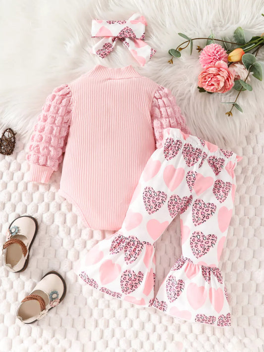 Children's Bubble Texture Long Sleeve Top and Pants Set with Headband