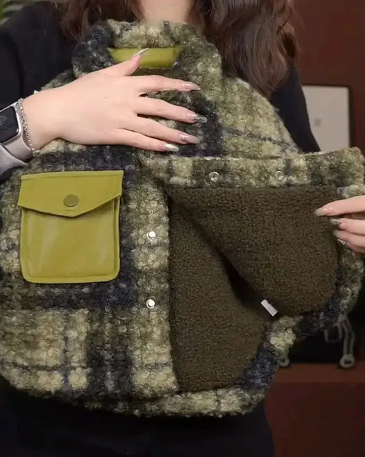 SaleBoys' New 2026 Green Grid Wool Blend Velvet Jacket