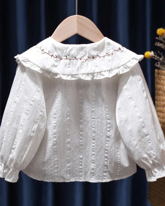 Girls Doll Lapel Collar Corduroy Blouse 100% Cotton