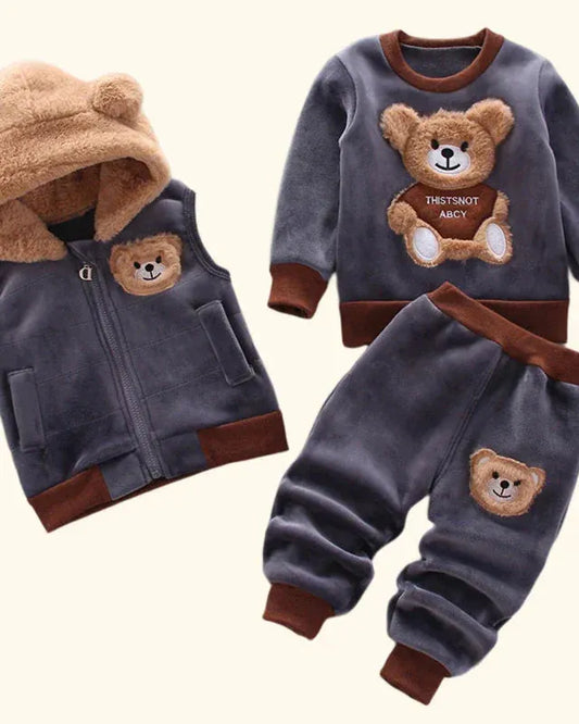 Kids Thick Warm 3Pcs Clothing Set - Hooded Outwear & Matching Pants Suit