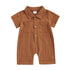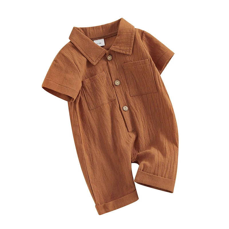 Infant Boy Cotton Linen Jumpsuit Solid Color Lapel Short Sleeve Front Button Romper Baby Clothes