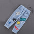 Boys Cotton Print Splice Stretch Denim Pants