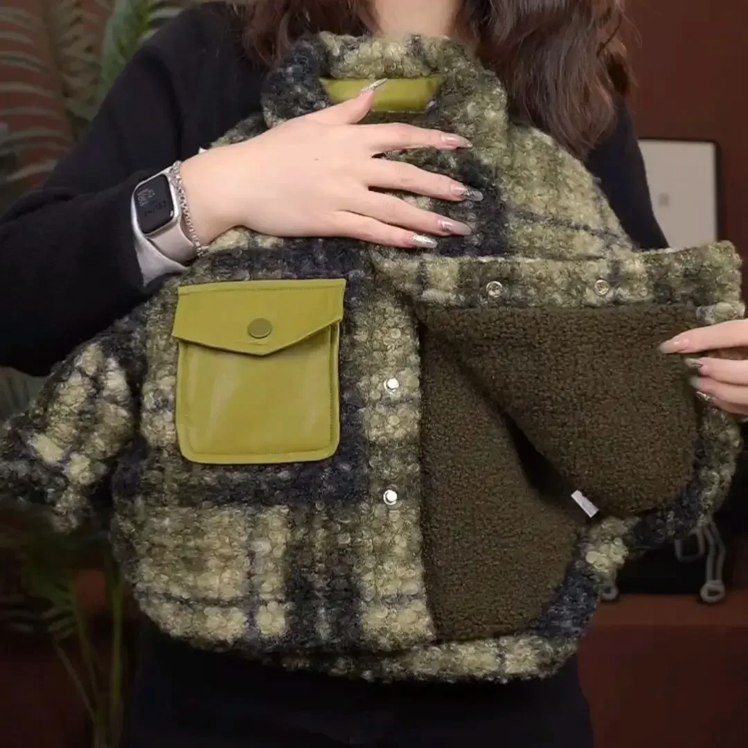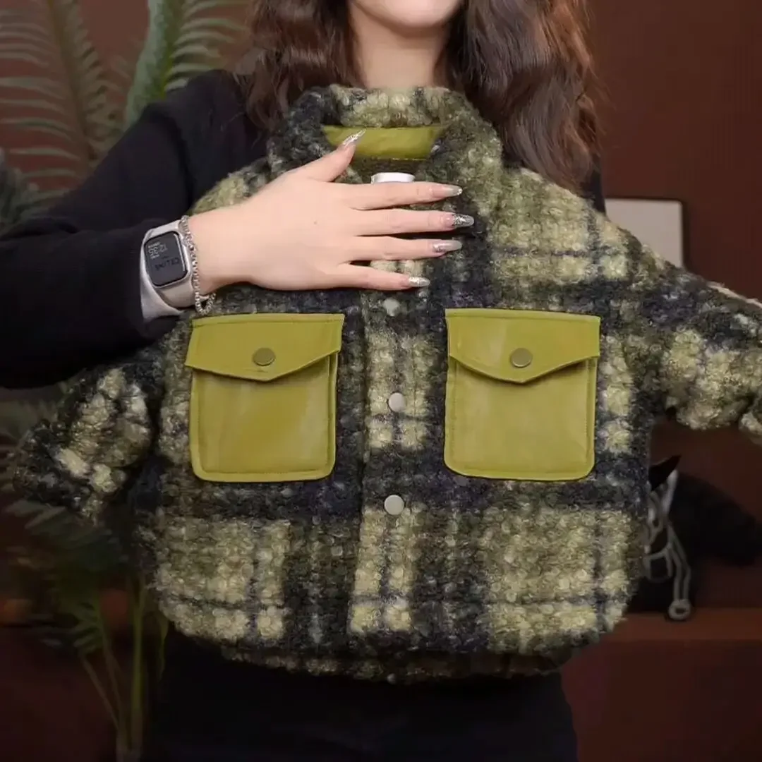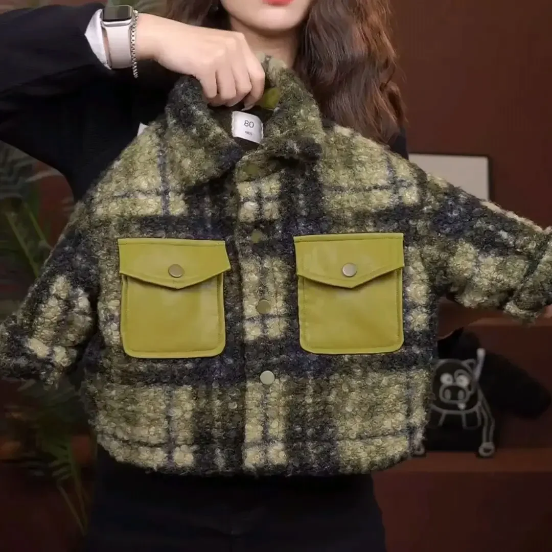 Boys' New 2026 Green Grid Wool Blend Velvet Jacket