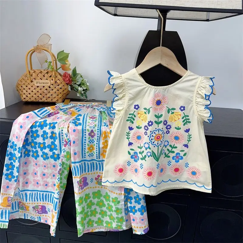 Children's Boutique Floral Print Sleeveless Top & Wide-Leg Pants Set